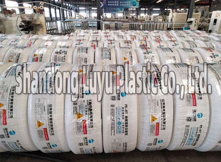 Les tuyaux PE-RT (Polyéthylène Résistant à la Chaleur) de marque "Luyu" sont d'un blanc laiteux. Ils sont fabriqués à partir de matières premières importées et d’extrudeuses Battenfeld Cincinnati.